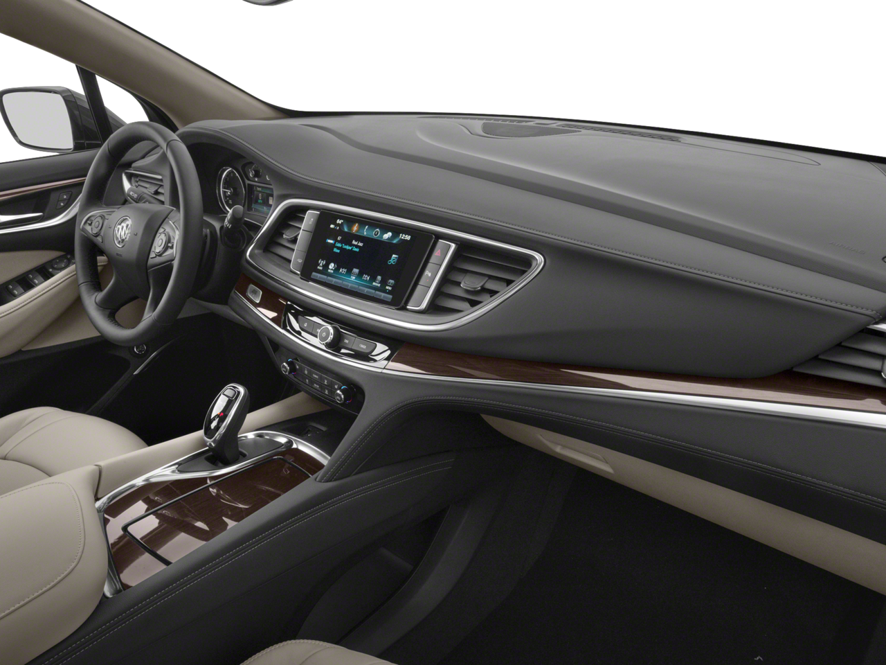 - Avenir Package Premium Package content plus: unique upper and lower grilles, wheels and front door badging; unique Chestnut/Ebony interior color including seat stitching and piping; Avenir embroidered head rests and floor mats; bold script sill plates all four doors; premium film decor accents; wood steering wheel; Buick Infotainment with Navigation; wireless charging; power dual moonroof; 8" reconfigurable driver information center; Surround Vision with full display inside rearview mirror and 5 exterior colors