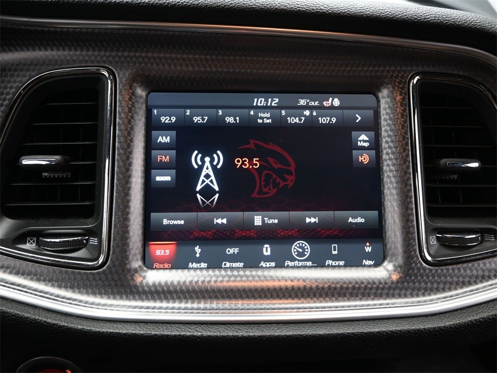 Professionally Detailed, Fully Inspected and Serviced, 1-Yr SiriusXM Guardian Trial, 2.62 Rear Axle Ratio, 4-Wheel Disc Brakes, 4G LTE Wi-Fi Hot Spot, 5-Year SiriusXM Traffic Service, 5-Year SiriusXM Travel Link Service, 6 Speakers, 8.4 Touchscreen Display, ABS brakes, Adaptive suspension, Air Conditioning, All Seats w/Leather Trim, Alloy wheels, AM/FM radio: SiriusXM, Anti-whiplash front head restraints, Apple CarPlay, Apple CarPlay/Android Auto, Auto-dimming Rear-View mirror, Automatic temperature control, Blind Spot & Cross Path Detection, Brake assist, Bumpers: body-color, Compass, Dark Engine Turn Interior Accents, Delay-off headlights, Driver Convenience Group, Driver door bin, Driver vanity mirror, Dual front impact airbags, Dual front side impact airbags, Electronic Stability Control, Emergency communication system: SiriusXM Guardian, For Details, Visit DriveUconnect.com, Four wheel independent suspension, Front anti-roll bar, Front Bucket Seats, Front Center Armrest, Front dual zone A/C, Front reading lights, Fully automatic headlights, Garage door transmitter, Google Android Auto, GPS Antenna Input, GPS Navigation, HD Radio, Heated door mirrors, Heated front seats, Heated steering wheel, Hellcat Logo Nappa/Alcantara Seat, High-Intensity Discharge Headlamps, Illuminated entry, Integrated Center Stack Radio, Integrated Voice Command w/Bluetooth®, Leather Shift Knob, Low tire pressure warning, Media Hub (2 USB, AUX), Orange Brake Calipers, Outside temperature display, Overhead airbag, Overhead console, Panic alarm, ParkView Rear Back-Up Camera, Passenger door bin, Passenger vanity mirror, Plus Package, Power door mirrors, Power driver seat, Power Multi-Function Foldaway Mirrors, Power steering, Power Tilt/Telescope Steering Column, Power windows, Quick Order Package 26R SRT Hellcat, Radio data system, Radio: Uconnect 4C w/8.4 Display, Rear anti-roll bar, Rear reading lights, Rear seat center armrest, Rear window defroster, Red Seat Belts, Remote keyless entry, Security system, SiriusXM Satellite Radio, SiriusXM Traffic Plus, SiriusXM Travel Link, Speed control, Speed-sensing steering, Split folding rear seat, Spoiler, Sport steering wheel, SRT Hellcat Logo Houndstooth Seats, Steering wheel mounted audio controls, Suede Door Trim Panel w/Map Pocket, Tachometer, Telescoping steering wheel, Tilt steering wheel, Tilt/Telescope Steering Column, Traction control, Trip computer, Uconnect 4C Nav w/8.4 Display, USB Host Flip, Variably intermittent wipers, Ventilated Front Seats, Wheels: 20 x 11.0 Devil's Rim Aluminum, Wheels: 20 x 9.5 SRT Lowgloss Black Performance, Widebody Competition Suspension, Widebody Fender Flares, Widebody Package (DISC).