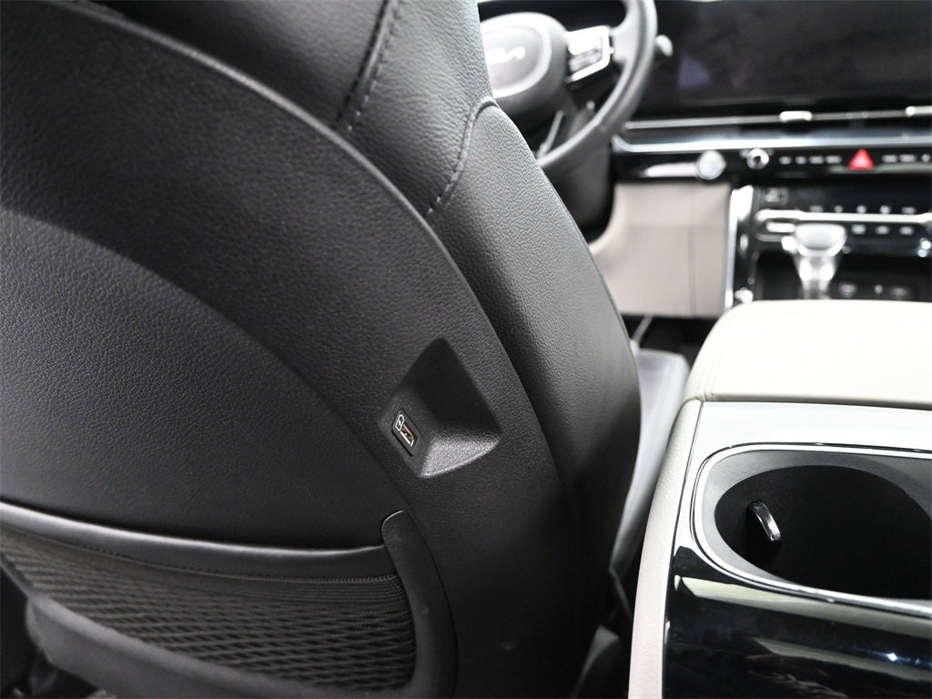 Professionally Detailed, Fully Inspected and Serviced, Certified Pre-owned, Kia Certified Pre-Owned Certified, 12 Speakers, 3.51 Axle Ratio, 3rd row seats: split-bench, 4-way Power Driver's Lumbar Support, 4-Wheel Disc Brakes, 8 Way Power Driver's Seat, 8 Way Power Front Passenger's Seat, ABS brakes, Air Conditioning, Alloy wheels, AM/FM radio: SiriusXM, Apple CarPlay & Android Auto, Auto High-beam Headlights, Auto-dimming Rear-View mirror, Automatic temperature control, Brake assist, Bumpers: body-color, Compass, Delay-off headlights, Driver door bin, Driver vanity mirror, Driver's Seat & Mirrors Memory System, Dual front impact airbags, Dual front side impact airbags, Electronic Stability Control, Emergency communication system: UVO eServices, Four wheel independent suspension, Front anti-roll bar, Front Bucket Seats, Front Center Armrest, Front dual zone A/C, Front fog lights, Front reading lights, Fully automatic headlights, Garage door transmitter: HomeLink, Heated & Ventilated Front Bucket Seats, Heated door mirrors, Heated front seats, Heated rear seats, Heated steering wheel, Illuminated entry, Interior Light Kit, Knee airbag, Leather Shift Knob, Leather steering wheel, Low tire pressure warning, Luxury Carpeted Floor Mats, Memory seat, Navigation system: UVO eServices, Occupant sensing airbag, Outside temperature display, Overhead airbag, Overhead console, Panic alarm, Passenger door bin, Passenger vanity mirror, Power 2nd-Row Moonroof, Power door mirrors, Power driver seat, Power Liftgate, Power moonroof, Power passenger seat, Power steering, Power windows, Pure Leather Seat Trim, Radio: AM/FM/HD Audio System, Rear air conditioning, Rear anti-roll bar, Rear reading lights, Rear window defroster, Rear window wiper, Reclining 3rd row seat, Remote keyless entry, Roof rack: rails only, Security system, Speed control, Speed-sensing steering, Split folding rear seat, Spoiler, Steering wheel mounted audio controls, Tachometer, Telescoping steering wheel, Tilt steering wheel, Traction control, Trip computer, Turn signal indicator mirrors, Variably intermittent wipers, Ventilated front seats, Ventilated rear seats, Wheels: 7.5J x 19 Black Painted Alloy.