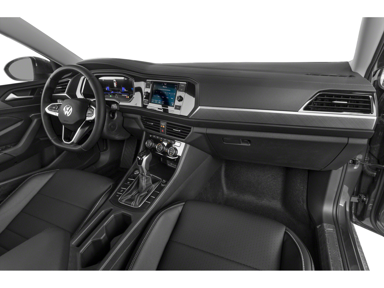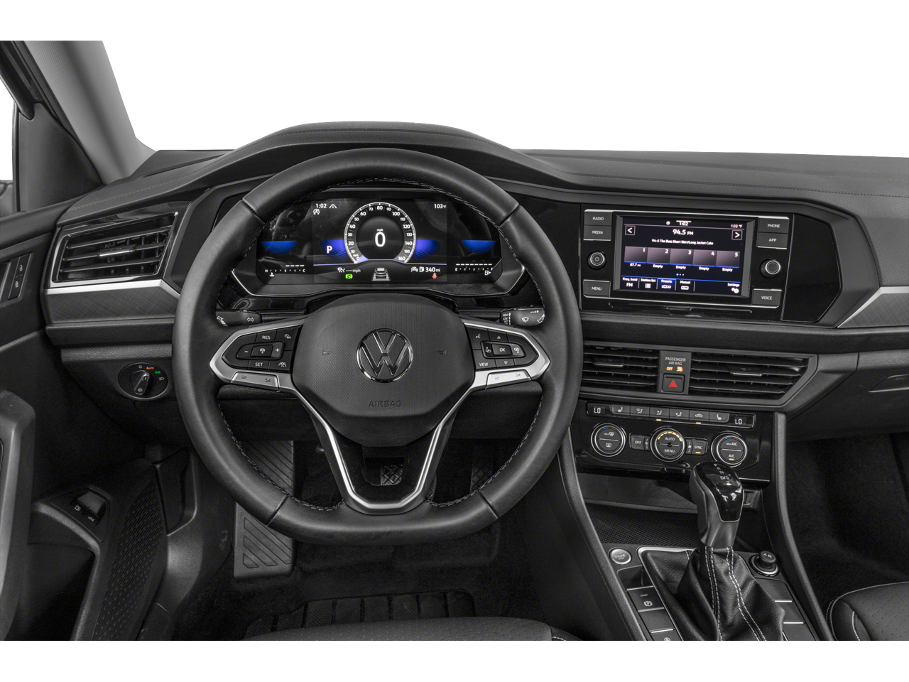 The Jetta's well-appointed interior is a testament to Volkswagen's commitment to craftsmanship. Slip into the comfortable V-Tex Leatherette Seat Trim and enjoy the convenience of Heated Front Seats, Power Driver Seat, and a Leather-Wrapped Steering Wheel. Stay connected with the advanced infotainment system, featuring a 6.5 Touchscreen and seamless integration with your smartphone.